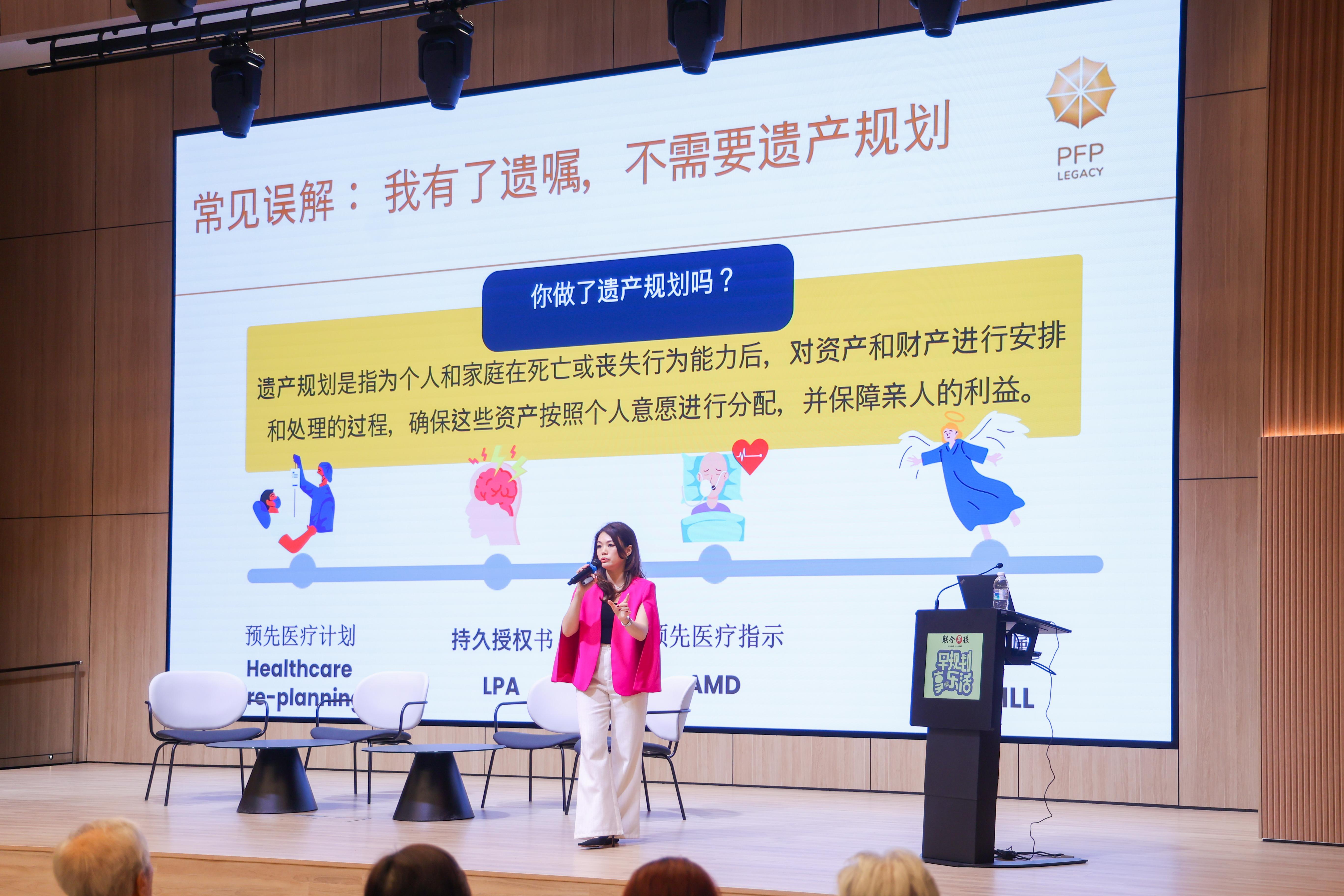 第三个讲题是引起最多观众提问的“遗嘱与持久授权书:守护家人,也守护自己”。卓越传诚规划执行董事彭凯怡以生动的方式澄清常见误区,提醒观众:
